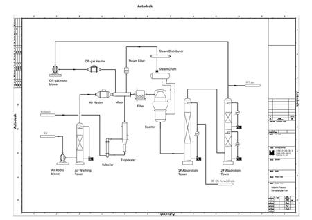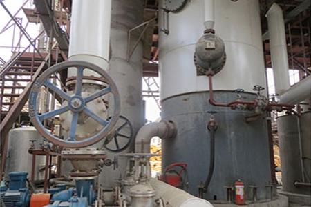 The above 4 gas types, after a complete mixing process, will go through one least filtration, then enter the methanol reactor, where a redox reaction occurs to generate formaldehyde gas. This gas from the reactor includes steam, nitrogen, oxygen and hydrogen. It then requires a secondary absorption process in order to obtain a formaldehyde solution. We use two independent absorbers. After complex absorption and heat exchange, we obtain the formaldehyde solution. In addition, the off gas is discharged from the top of absorber 2#. Part of the off gas goes into the off-gas roots blower for circulation and the other enters the furnace for burning, and will obtain steam under a variety of pressure.